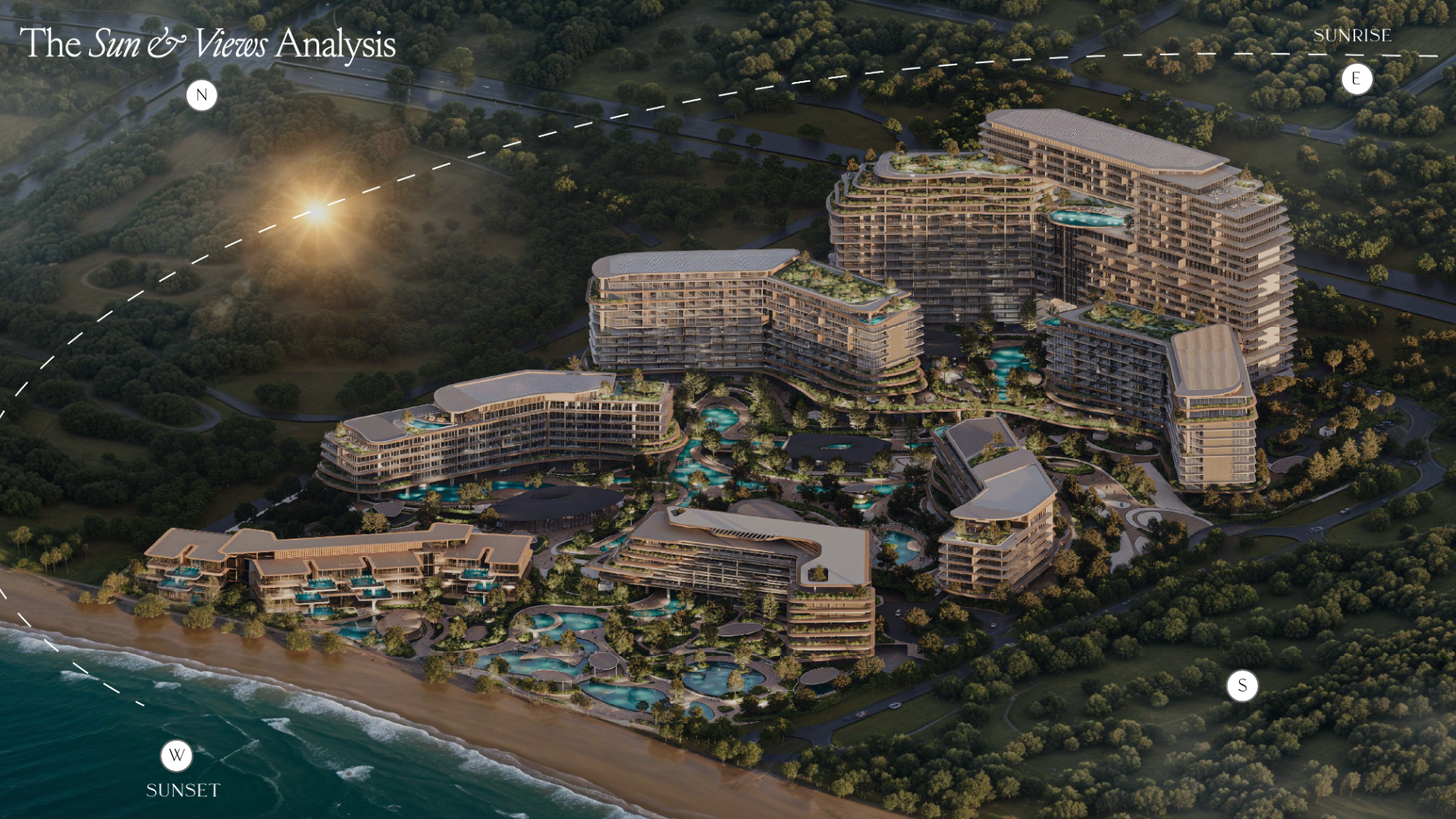Projekt inspirowany jest kojącym rytmem morza, naturalnym światłem i otwartą przestrzenią, co znajduje odzwierciedlenie w minimalistycznych formach, czystych liniach i eleganckich fasadach, które celowo nawiązują do spokojnej, plażowej estetyki. Takie podejście sprawia, że budynki nie dominują krajobrazu, lecz płynnie z nim współgrają, tworząc środowisko sprzyjające codziennemu relaksowi i kontaktowi z naturą.
