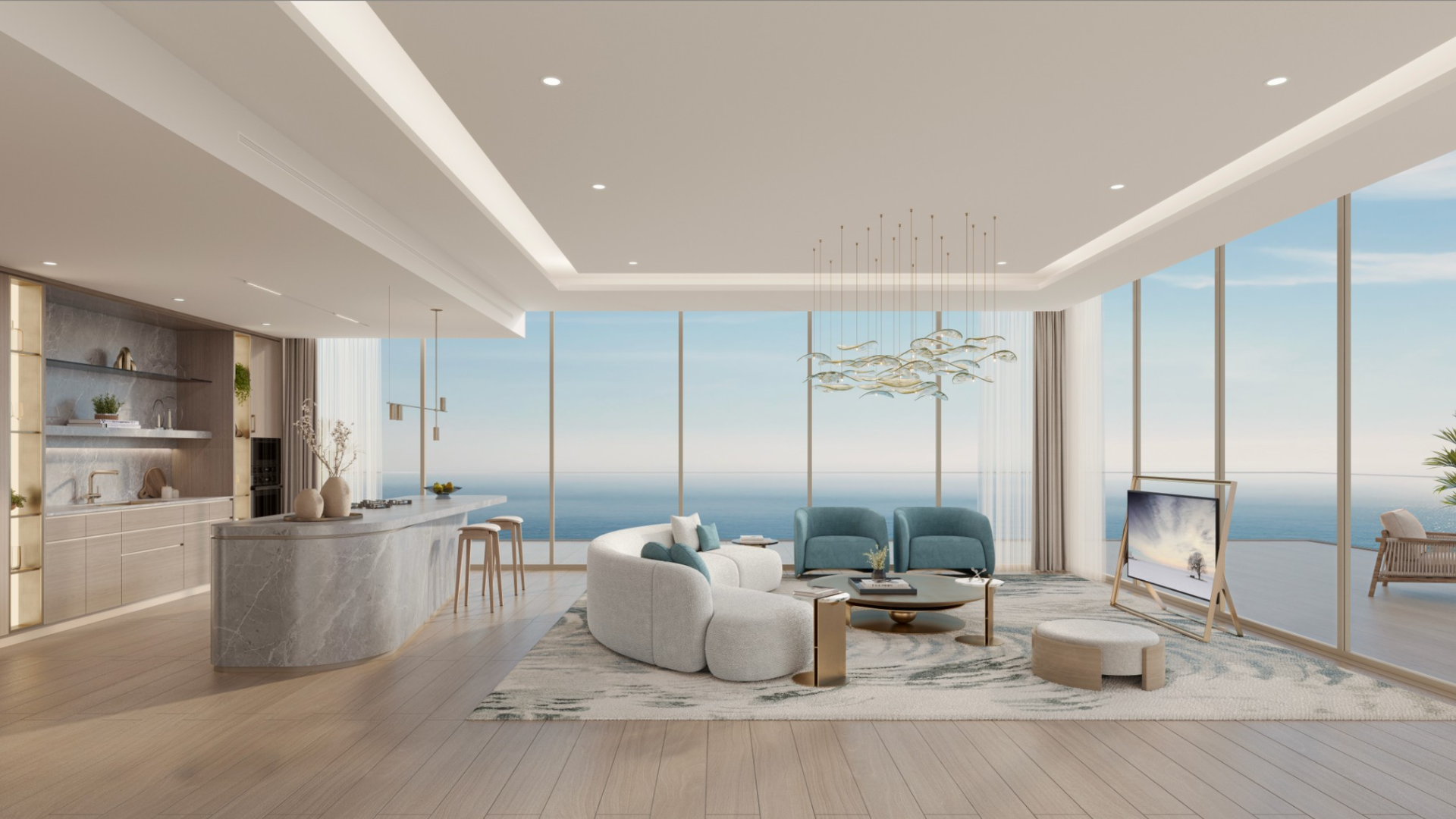 Projekt składa się z sześciu budynków o zróżnicowanej wysokości, które razem tworzą harmonijną, niską panoramę wyspy i zapewniają prywatność oraz poczucie przestrzeni mieszkańcom. W ofercie znajdują się apartamenty 1, 2 i 3-pokojowe oraz limitowana kolekcja ultra-luksusowych penthousów 3-4-5 pokojowych, z prywatnymi basenami, siłowniami na dachu i panoramicznymi widokami na morze — to właśnie one definiują najwyższy poziom wyrafinowanego życia na dubajskim wybrzeżu.